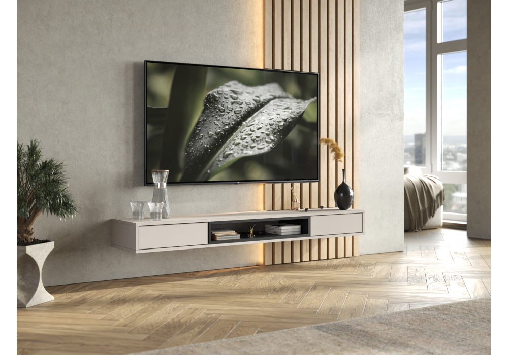 Купить "ТВ-тумба Woodville Делора 1,6м кашемир / черный 674713"
