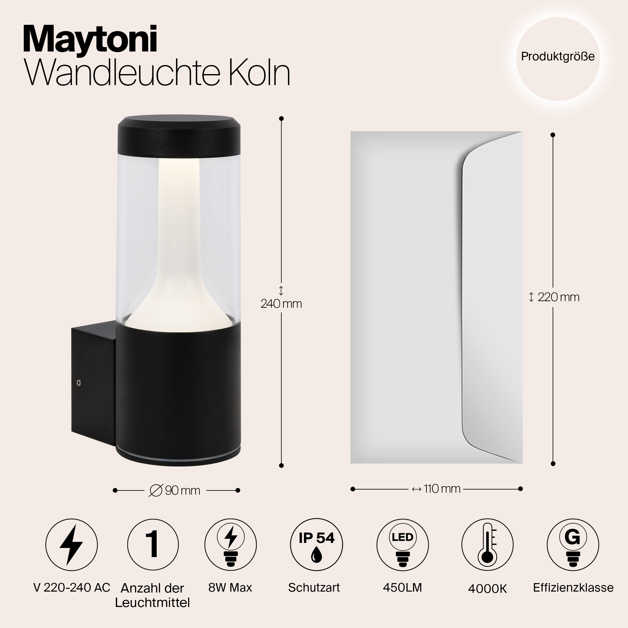 Уличный настенный светодиодный светильник Maytoni Koln O590WL-L8B4K в Волгограде