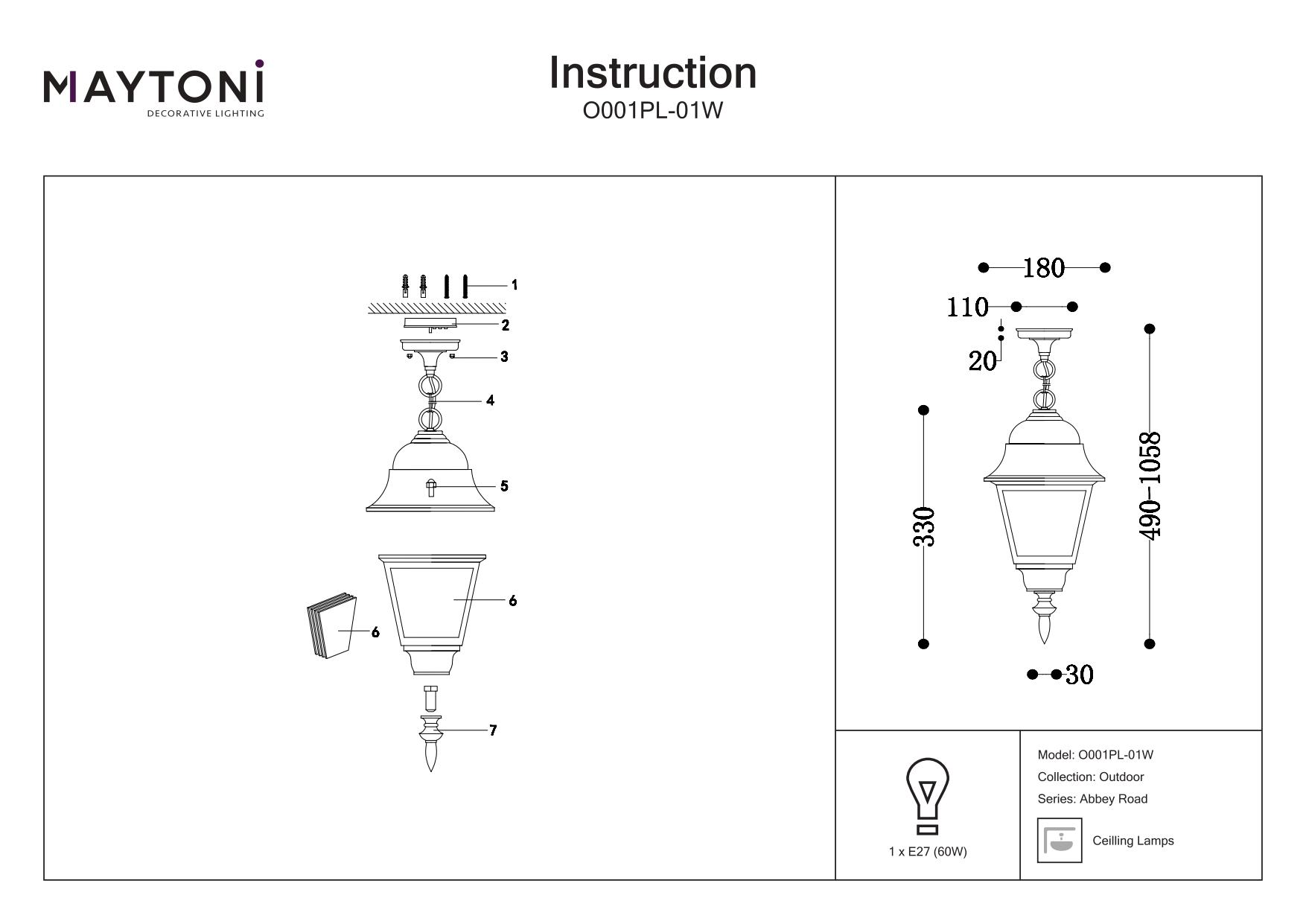 Купить "Уличный подвесной светильник Maytoni Abbey Road O001PL-01W"