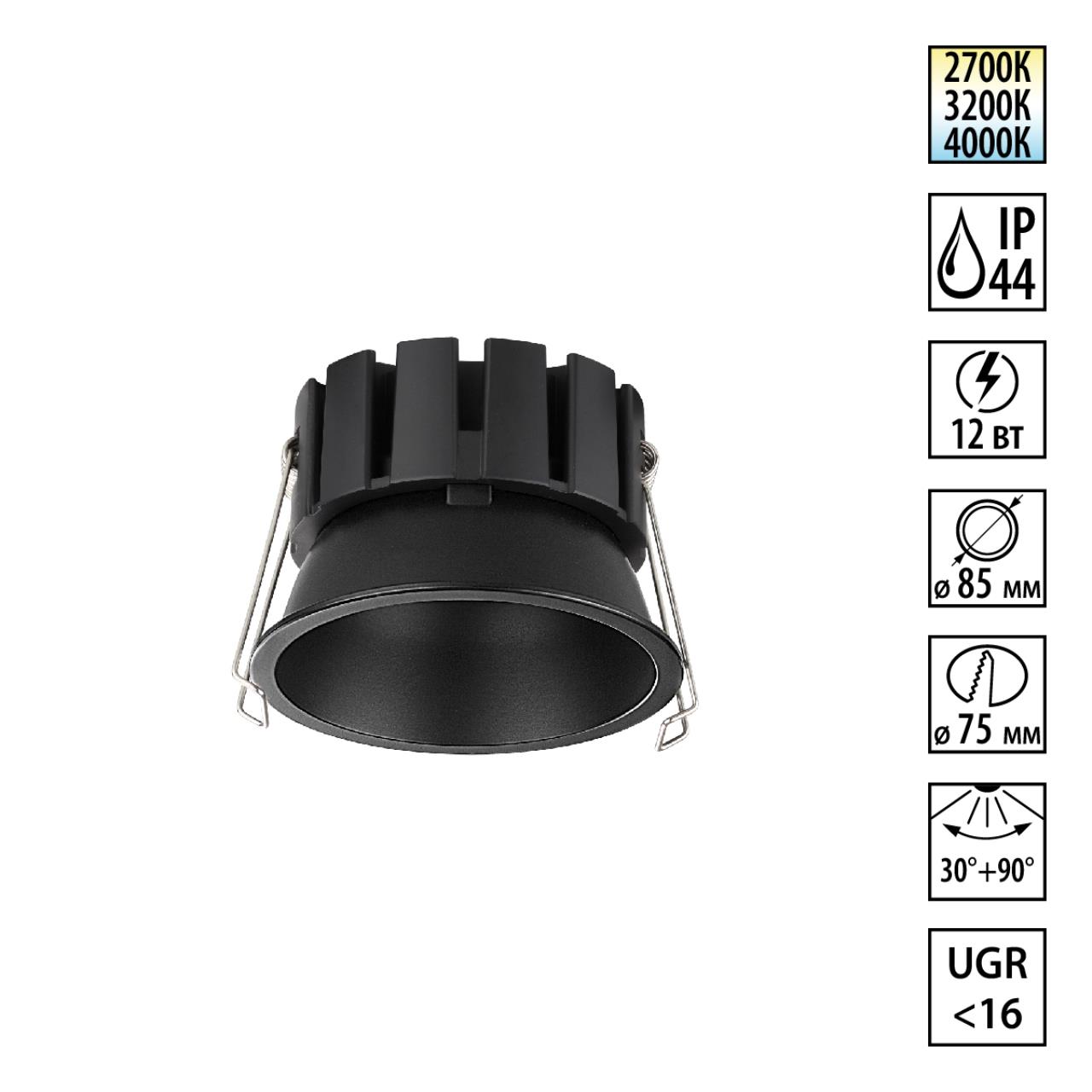 Встраиваемый светильник светодиодный с переключателем цветовой температуры Novotech SOLIS 359858 черный в Волгограде