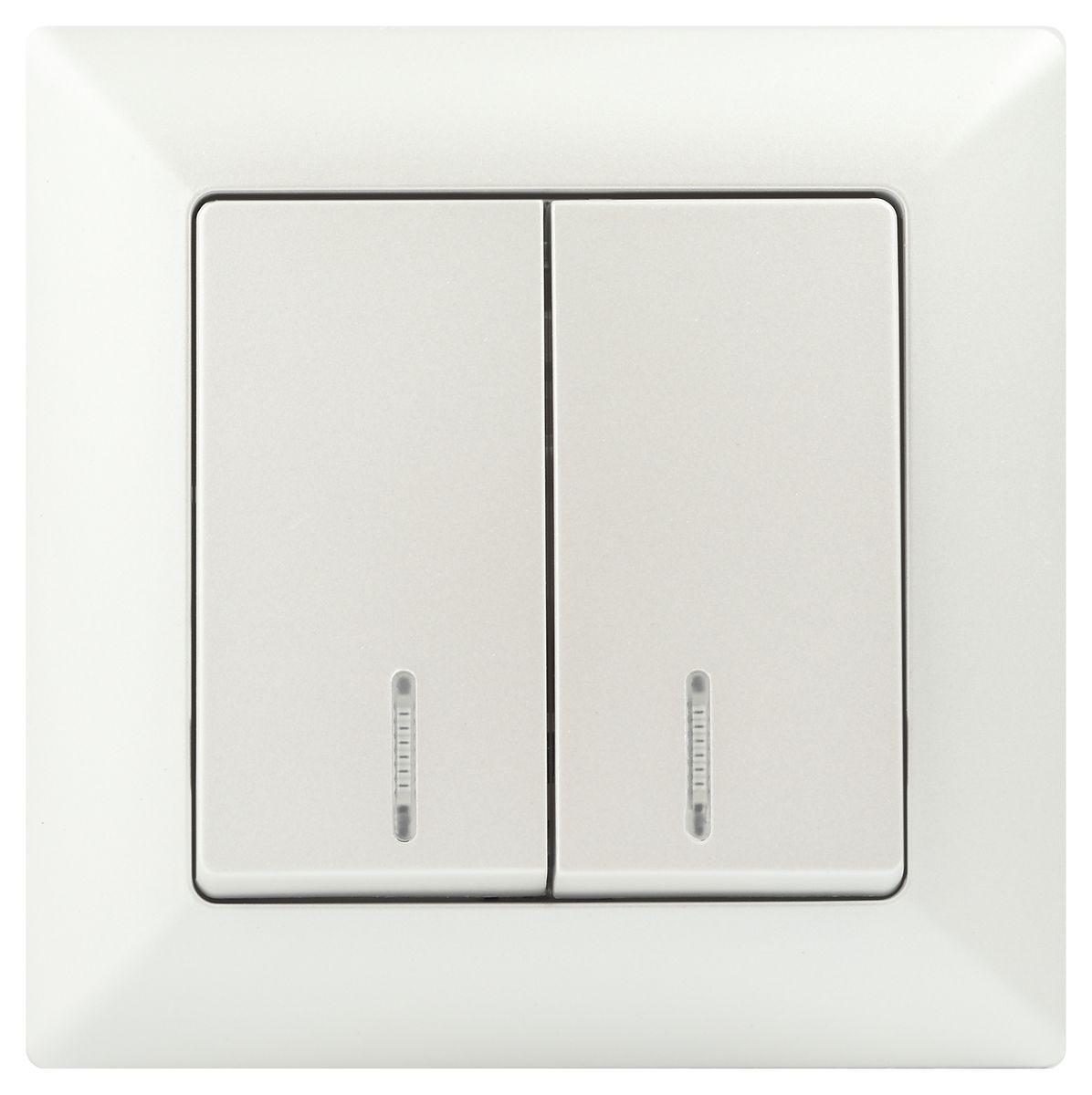 Купить "Выключатель двухклавишный ЭРА Intro Solo 10A 250V с подсветкой перламутровый 4-105-06 Б0053598"