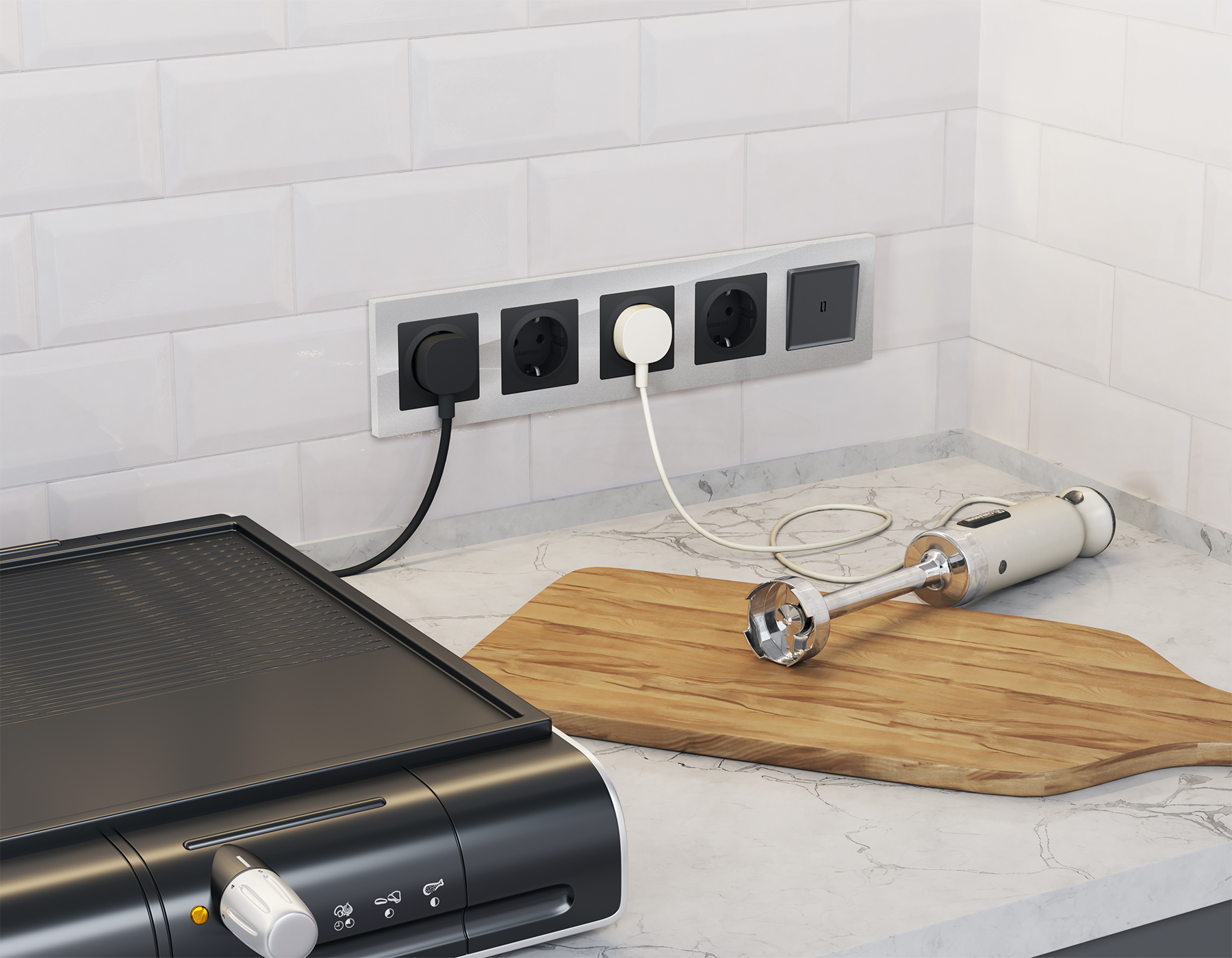 Многогранный ассортимент Ambrella Volt включает в себя механизмы, лицевые панели и рамки, а также комплекты, доступные в различных цветовых решениях. Продукция представлена в модульном исполнении, что позволяет гибко настраивать внешний вид и функциональность. Вам будет легко заменить лицевую панель, рамку или механизм, найдя идеальное сочетание цветов.